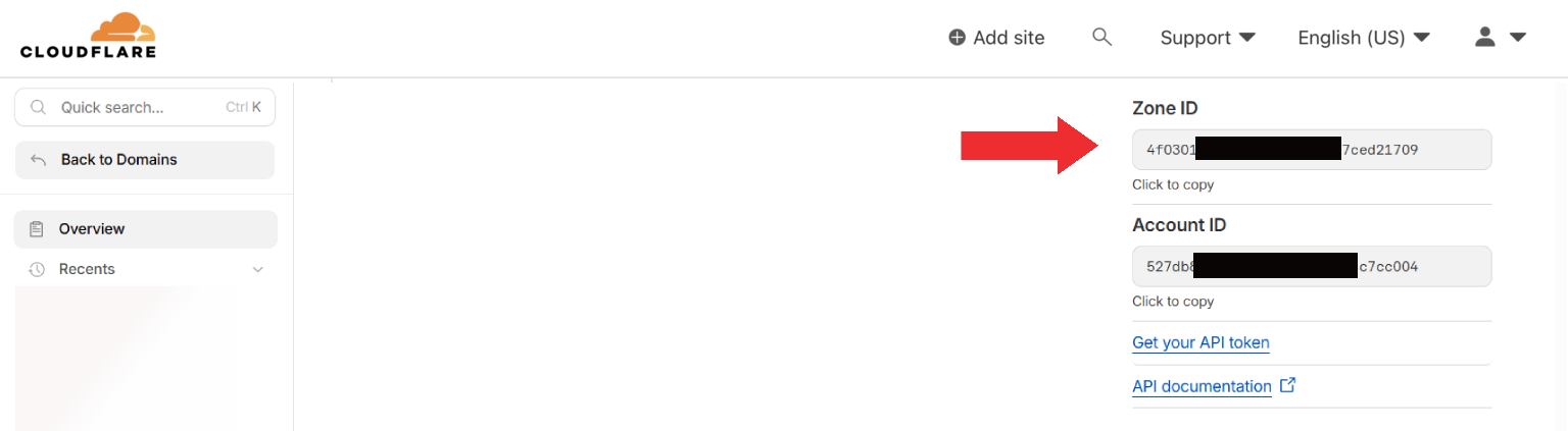 Copy and save “API Key” and “Zone ID” to configure Cloudflare free CDN.