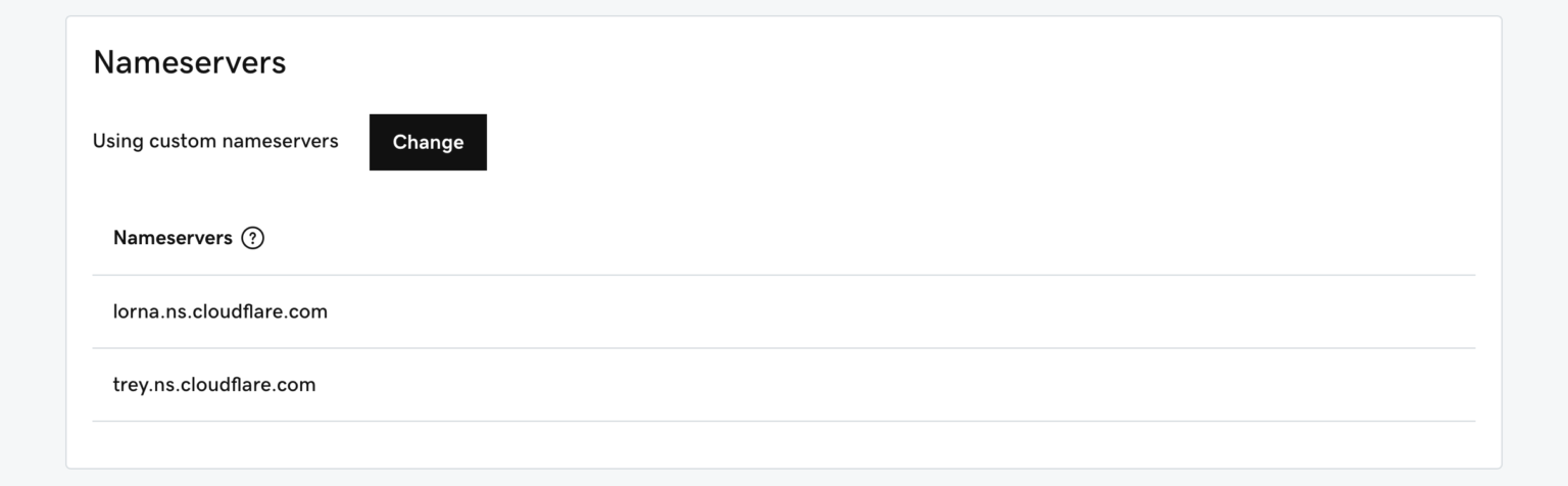 Copy and paste Cloudflare’s nameservers in the first two fields and click Save to finalize the process.